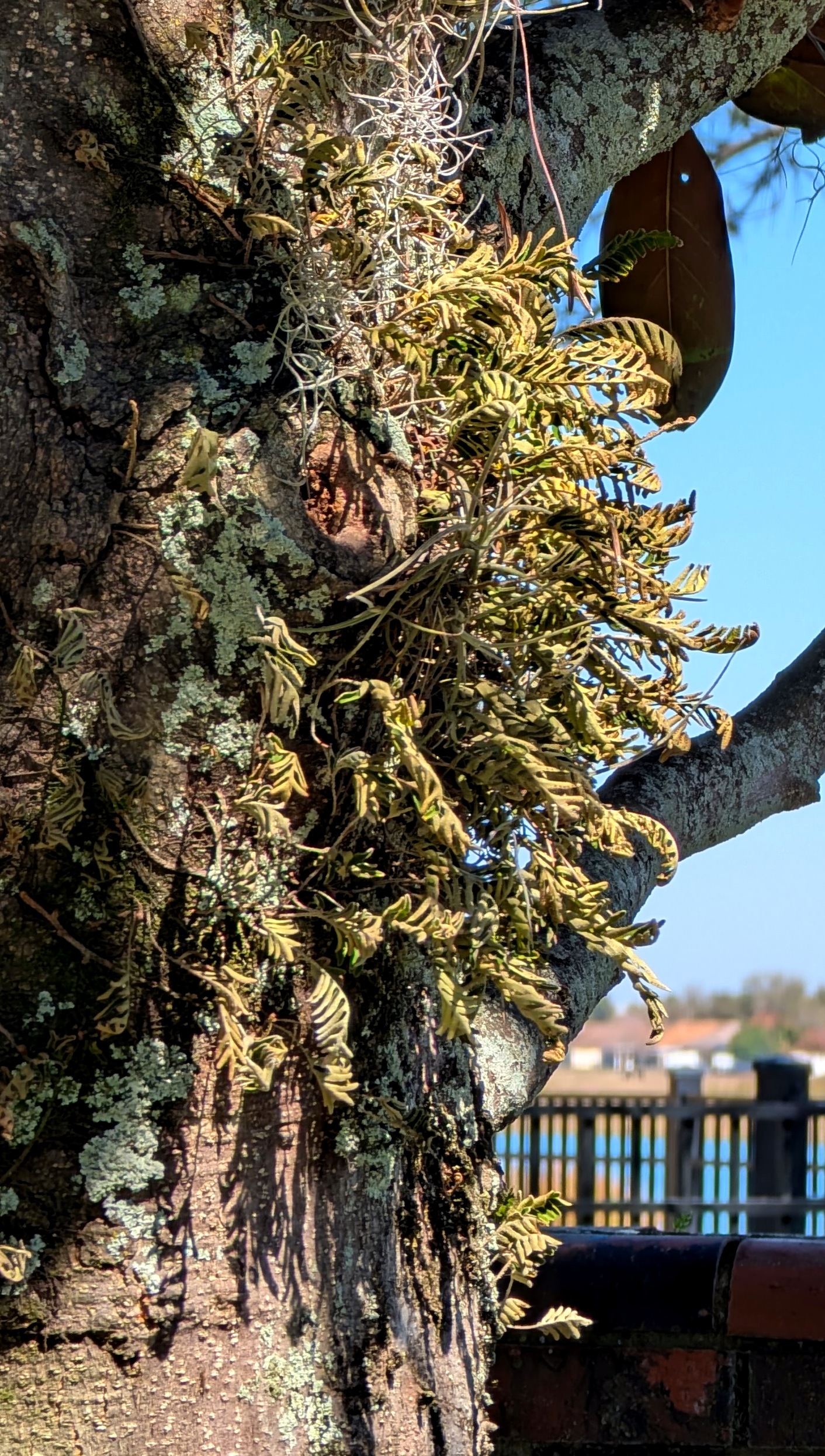Our yard on the left, neighbor’s on the right. Photo is unretouched. January 2026.