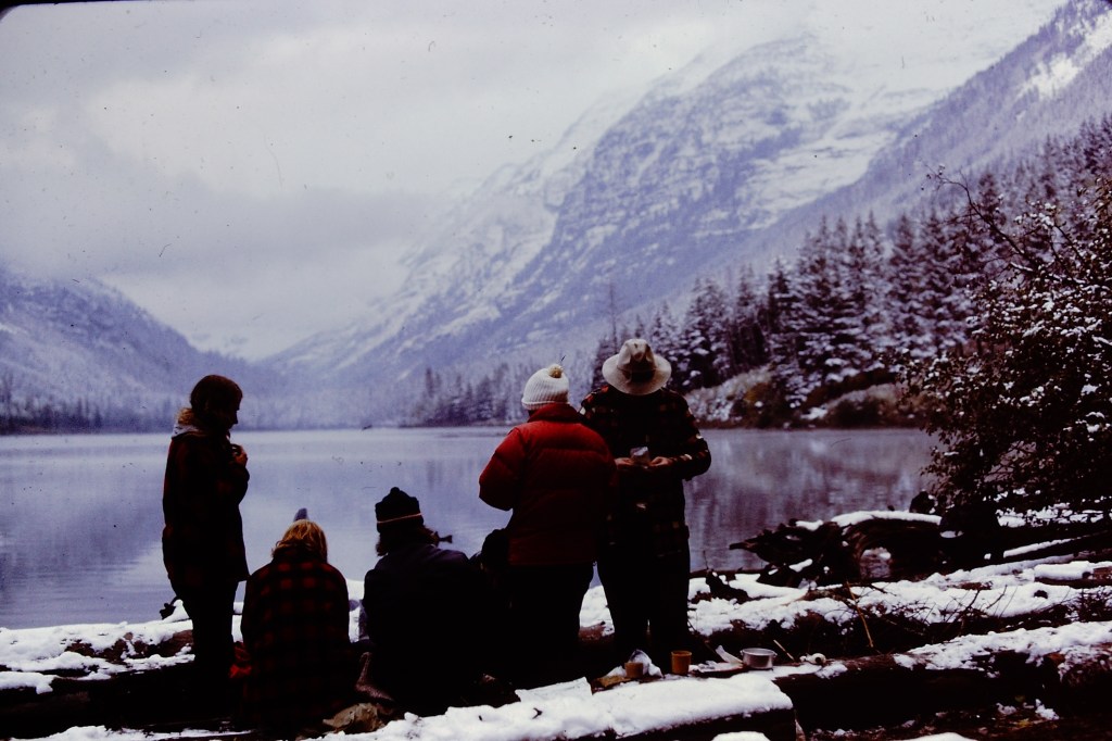 In the room two doors down from this office, a leaf-green down jacket is draped over a plastic lawn chair. I purchased three items in the summer of 1972 to keep me warm while camping in the Rocky Mountains. Recently graduated from high school, I had never camped in my life, and in the fall of that year I would enroll at the University of Montana in a program featuring frequent camping trips. My new advisor recommended two things for camping: a down jacket and a wool sweater. More precisely, he recommended buying two wool sweaters at Goodwill, cutting the bottom six-to-eight inches off of one and sewing them on to the other to make a wool tunic. I bought the jacket and the two sweaters as directed, paying $1.99 for one sweater and 99-cents for a second. My mother made the necessary alterations. (The more expensive sweater fell to her shears.) When camping ended a year later, I removed the add-on, and kept the 99-cent sweater until it joined the mossy wool coat from 1968 in the commercial dumpster in my front driveway. Mostly I tossed it to appease my wife, but I admitted to myself that the high neck on the coarse wool sweater irritated my skin. The green down jacket sports a two-inch square of green plastic tape on one elbow where a spark from a campfire fell and melted a hole. It’s the original tape from 40 years ago. I wore the jacket just a few weeks ago during a cold snap when temps lived in the teens and twenties. Come to think of it, I’m wearing it in the photo above as I toss its older brother into the dumpster!