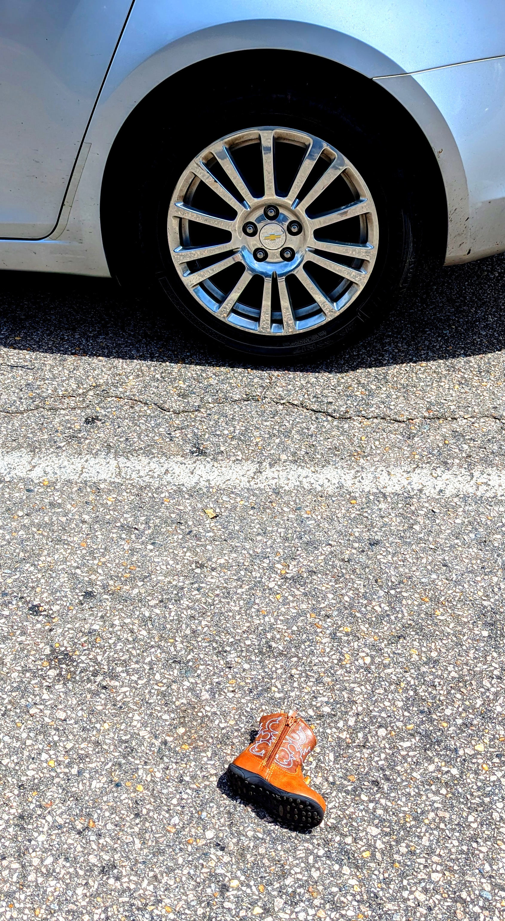 Little cowboy cries for his boot