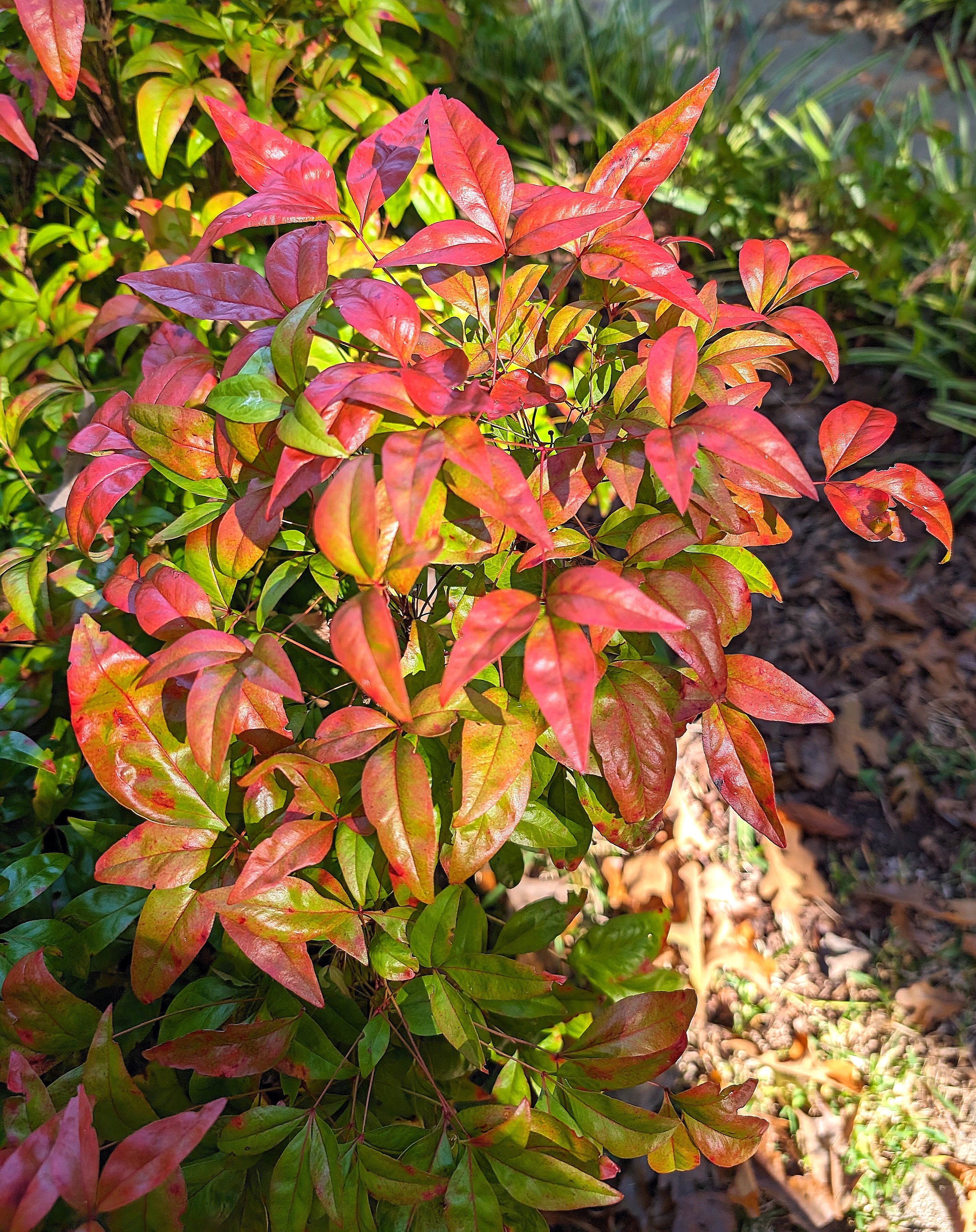 I’ve been laid up, figuratively speaking, from a lower back issue which has made standing up problematic. Little good has come from this, but today as a bit of therapy, I took a perambulation around our yard and the near neighbors. Here’s what early autumn looks like in Raleigh, NC. The shrub above does its thing along our front walk. I’m too lazy to look up what it is.