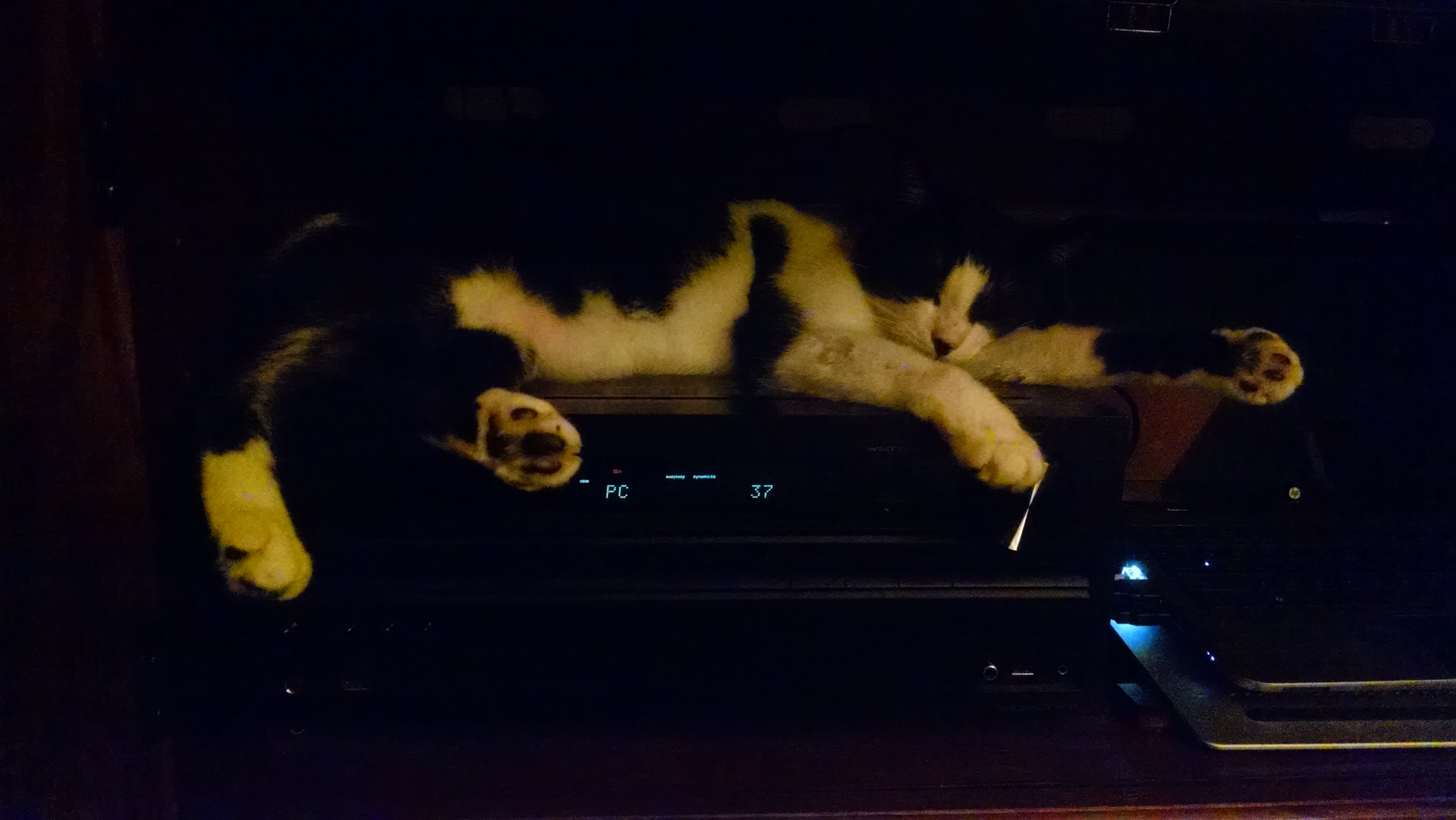 Benny the audiophile, appreciating a fine stereo amp. March 2016.