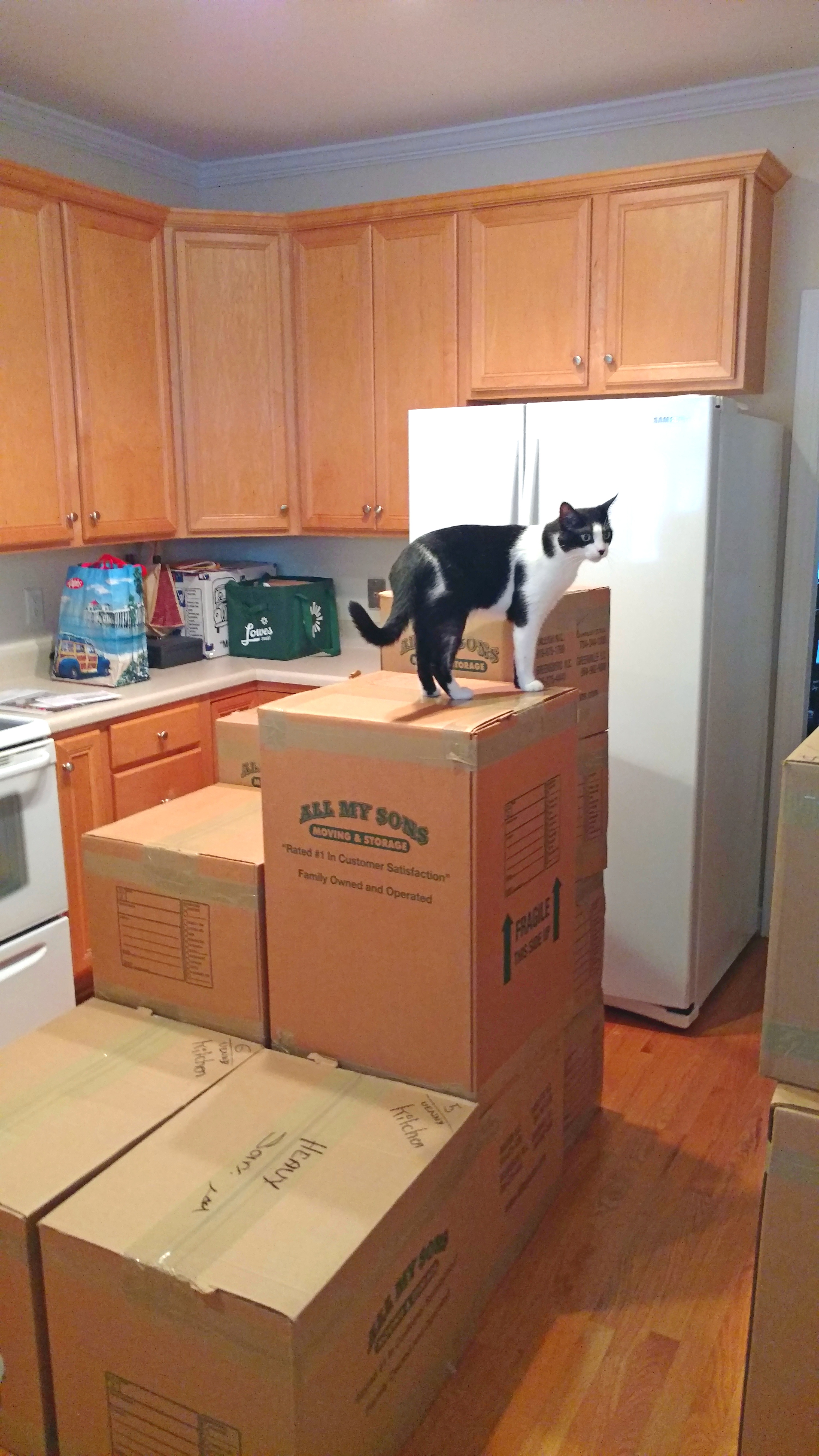 Benny supervised the move and checked boxes for food. September 2016.
