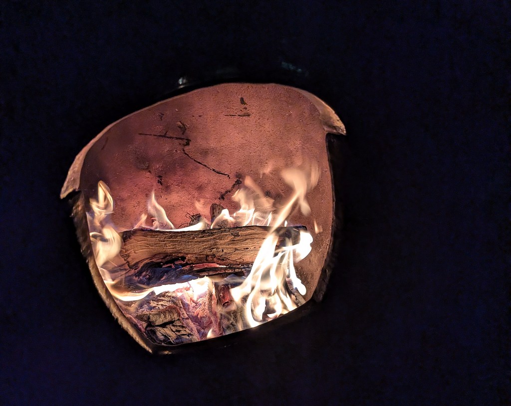 We gathered with friends to welcome the New Year with simple Southern fare: ham, boiled potatoes, boiled cabbage, biscuits. After loosening our creaky social graces with applications of Belgian beer, my Southern brother of a different mother lit up his new chiminea and we talked of things ponderous and trivial. The moon stared us down, afraid to blink for missing our ephemeral lives. Oak hissed and crackled in the fire.