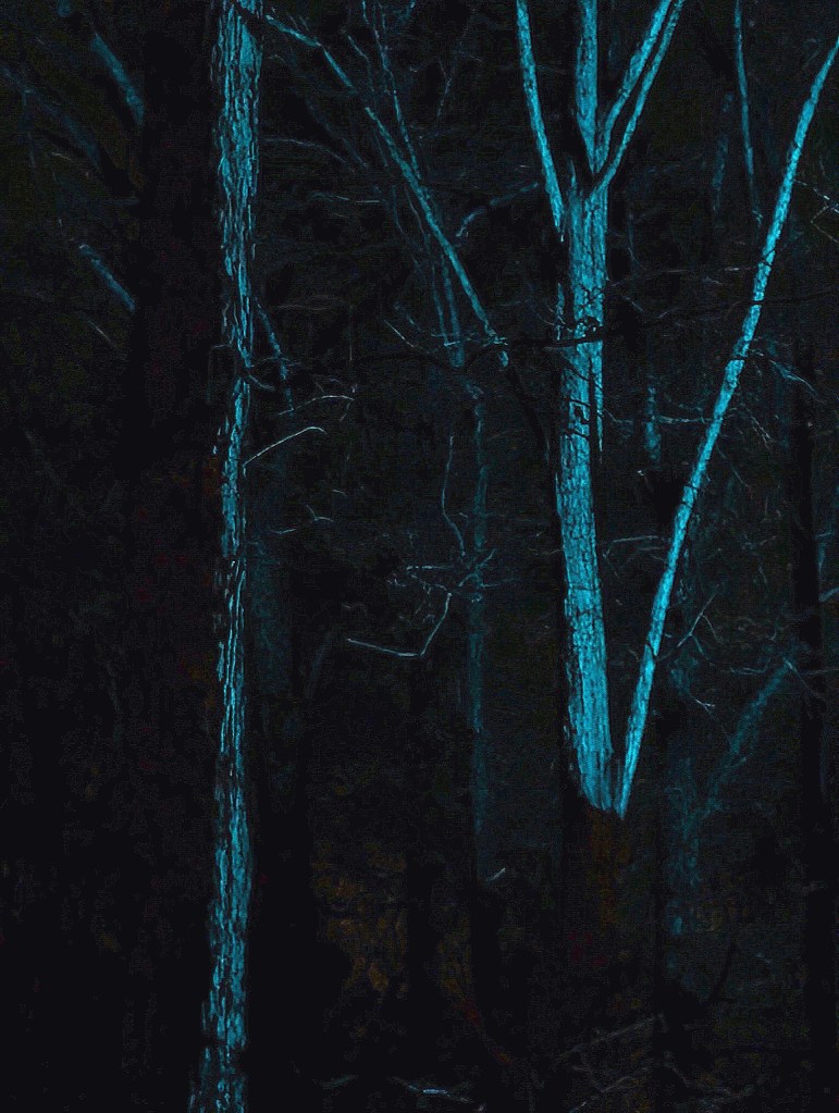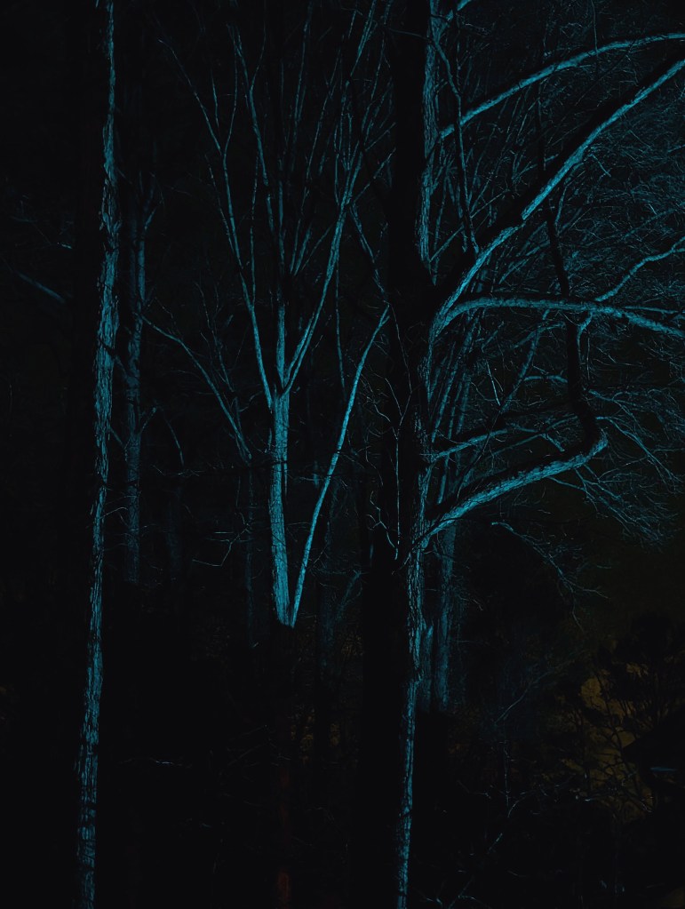 Finally we admitted our backsides were too cold and our frontsides were getting quite toasty. We headed indoors, while tarted up versions of the trees danced in our heads…