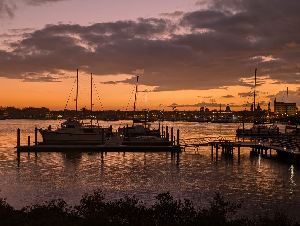 The sun sets over the historic portion of St. Augustine, and our vacation nears its end also. I would retouch this photo, but we’ve had too much fun today which involved drinking beer. I’ll retouch it later, he promised. March 2026.