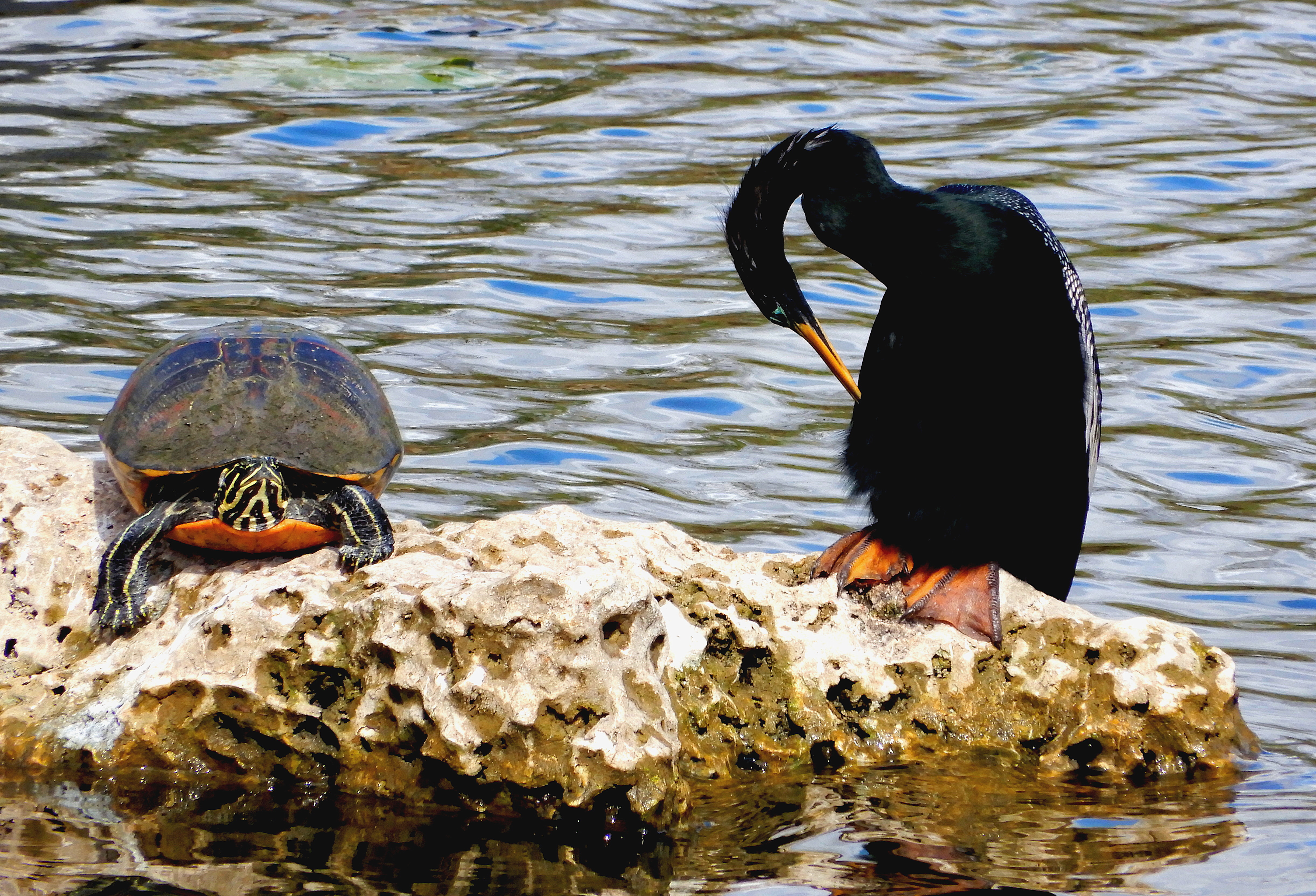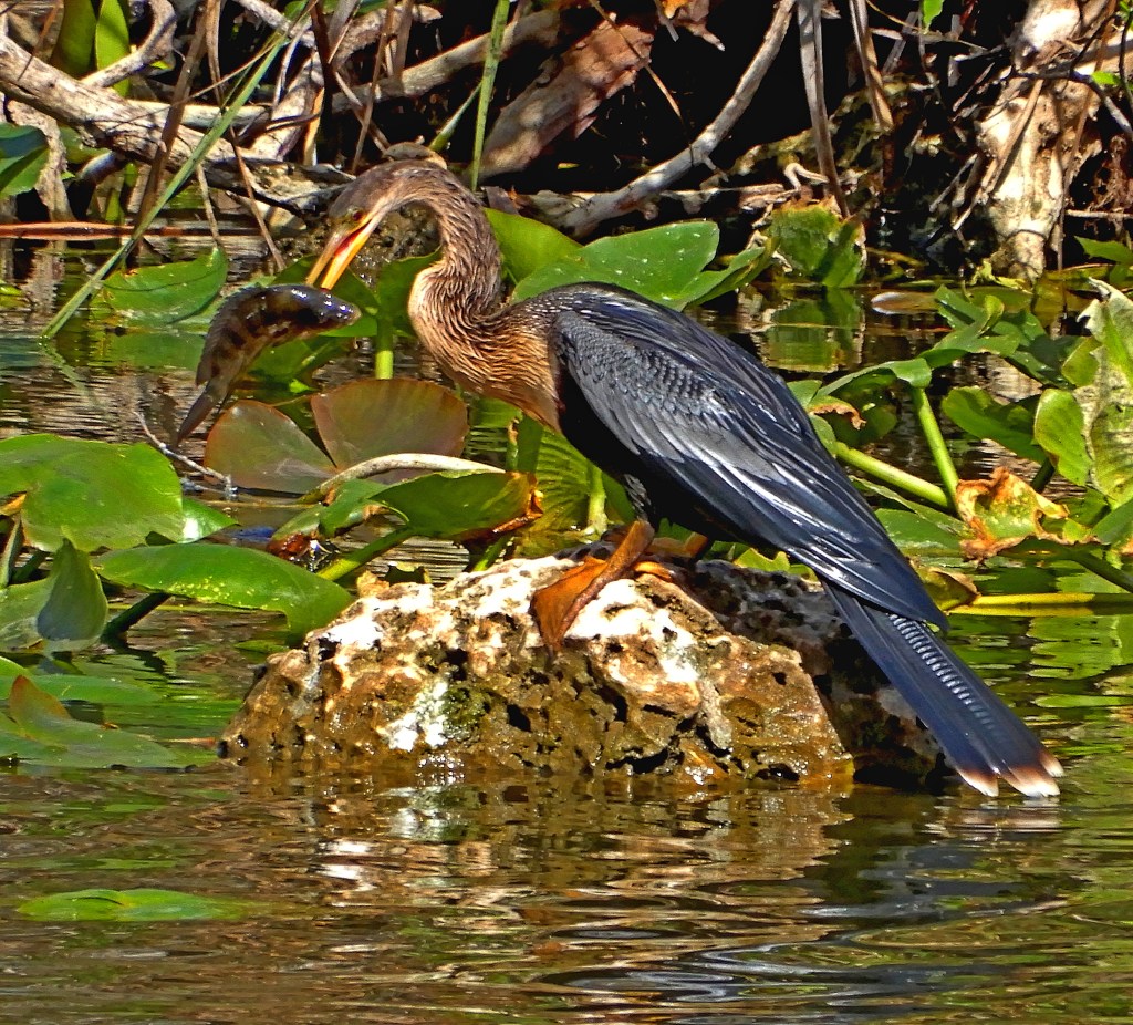 When I think of the Everglades National Park’s Royal Palm Visitor Center I immediately see two visions in my mind: a parking lot full of vultures and Anhingas. The first vision includes a non-identified carcass suspended from a lamp pole which supposedly kept the Black Vultures from eating the rubber off of your car’s windshield wipers. The second one looks like this: