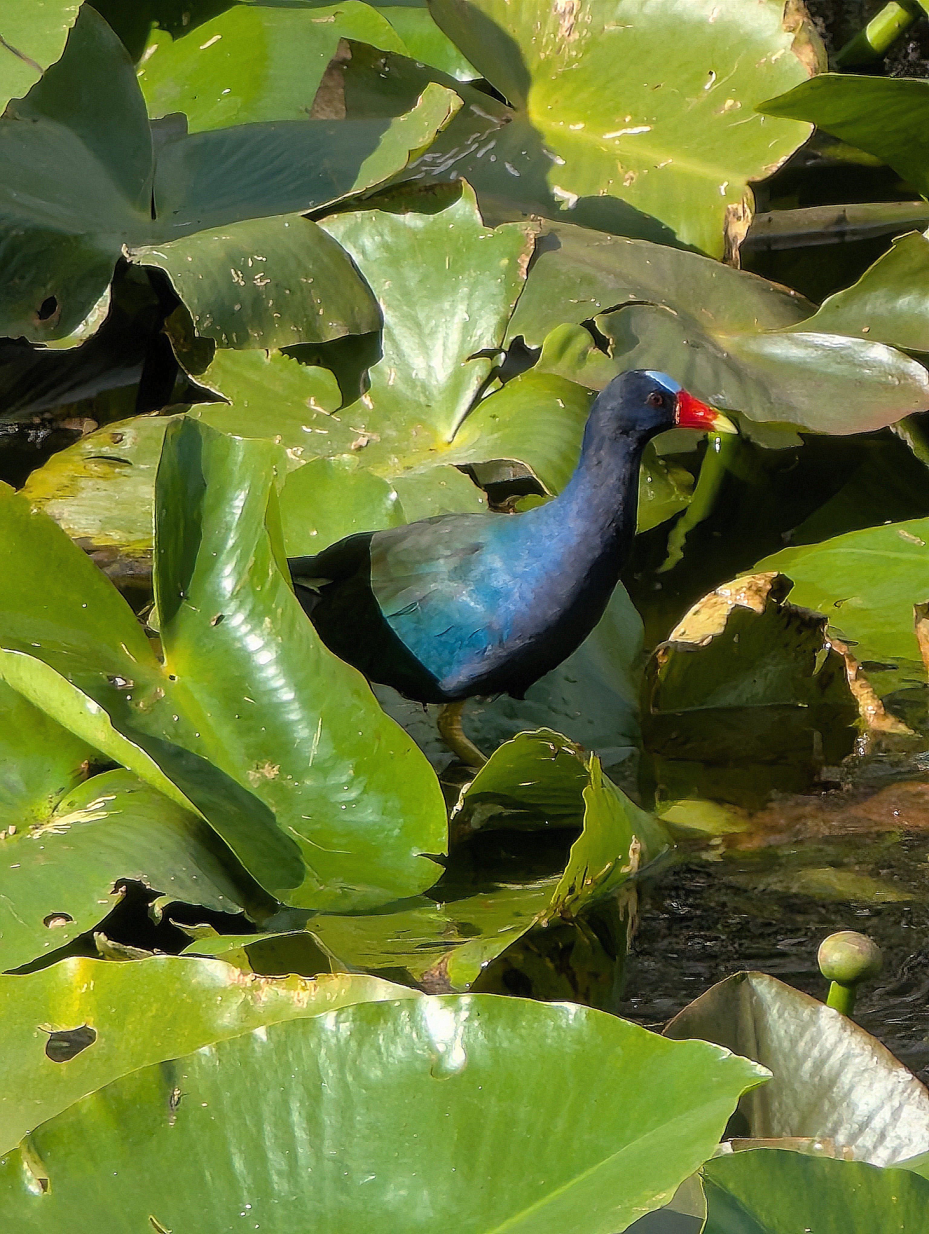 And running across the lily pads are the most striking little birds! Behold, the Purple Gallinule: