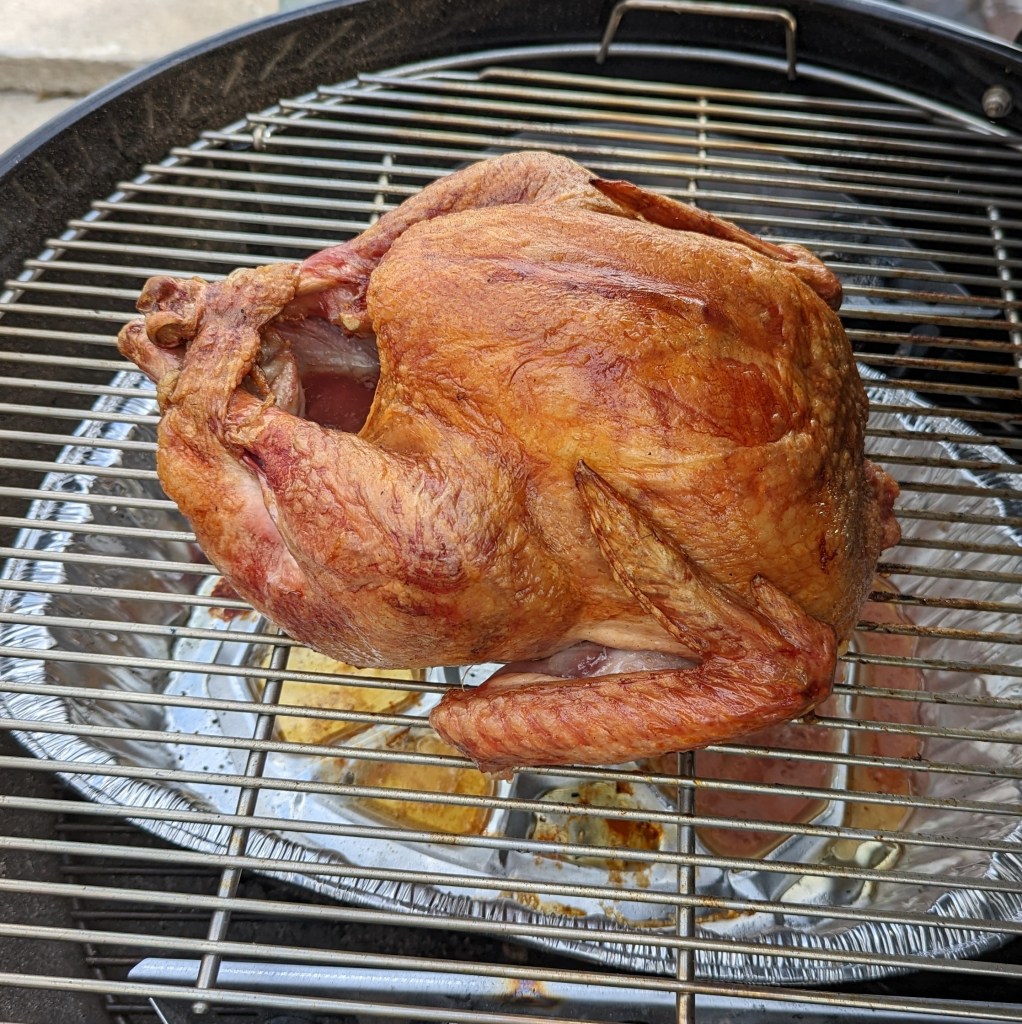 The latest of several T-giving birds on the Bar-B. My friend George oversaw this one as I kibitzed from the sidelines. Bogue Sound, NC. Thanksgiving 2023.