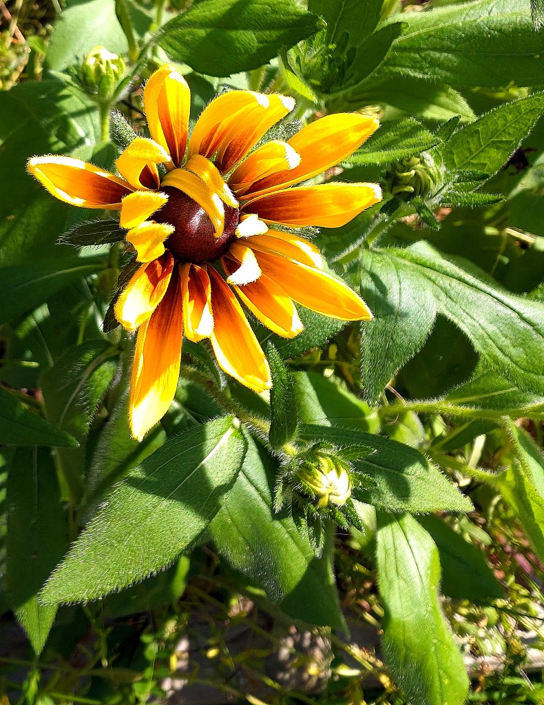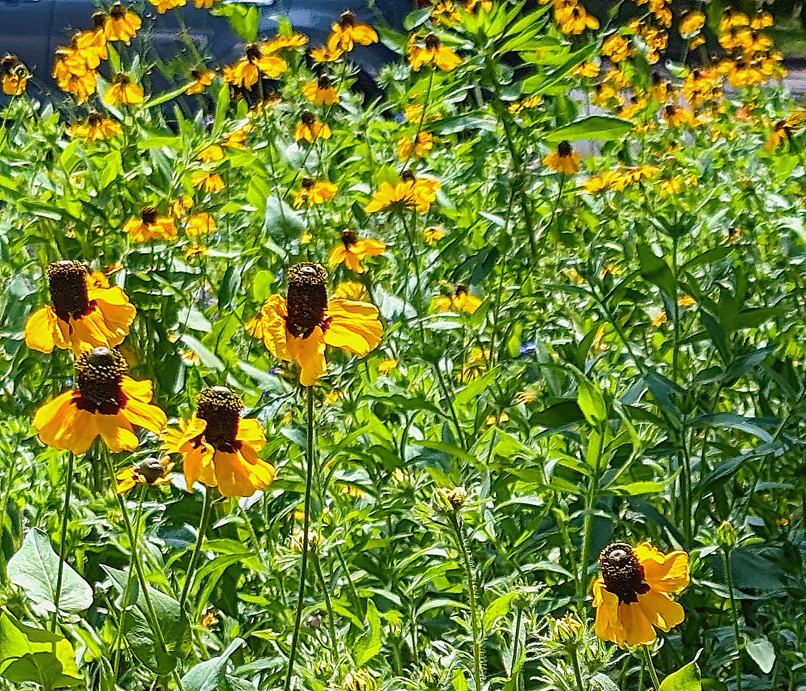 Coming home we remarked that our own surprising volunteer Black-eyed Susan plants were starting to look pretty good: