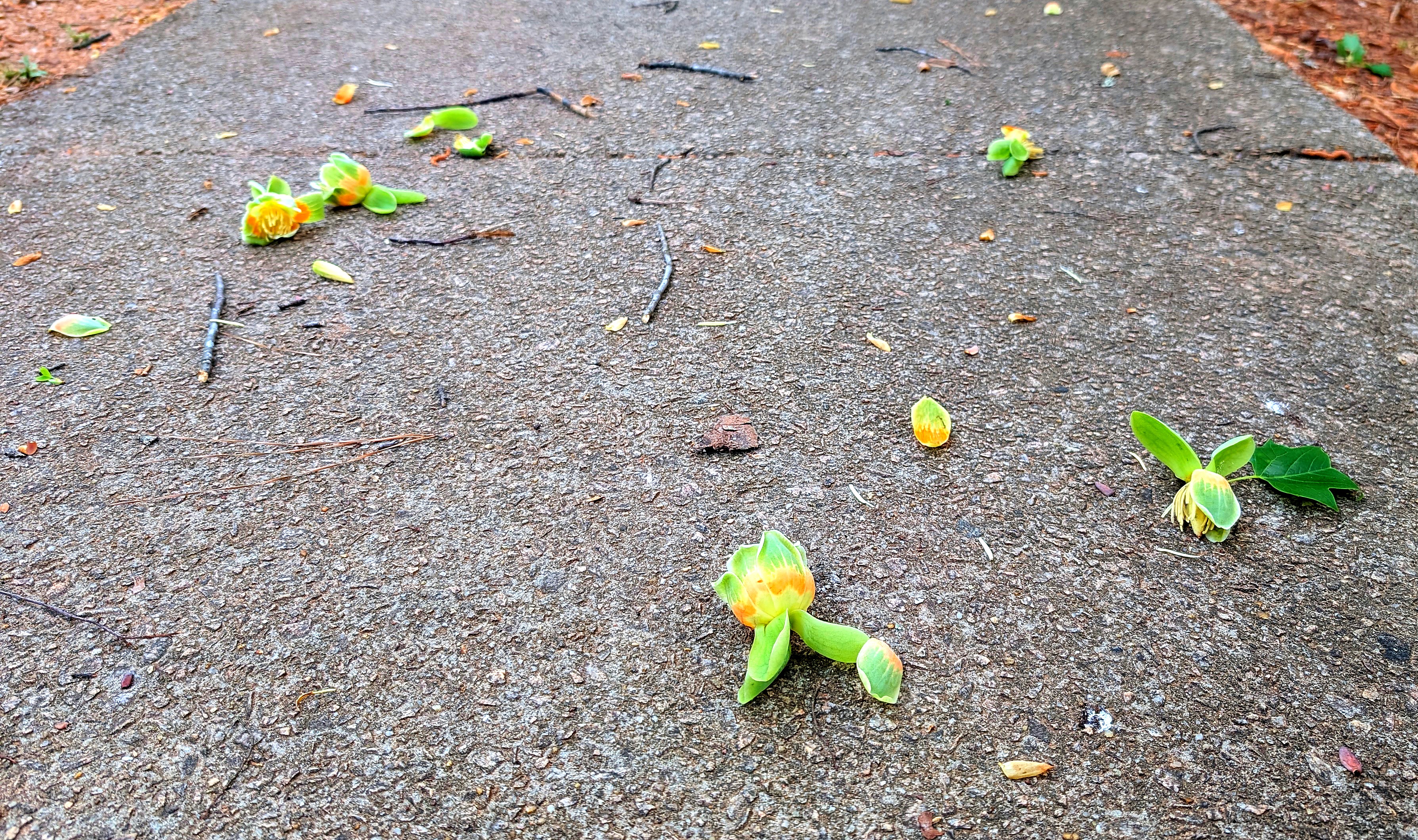 I noticed how rapidly tulip poplars have dropped their blossoms. Apparently a quick flowering gets consummated as rapidly. Their flowers no longer being necessary….