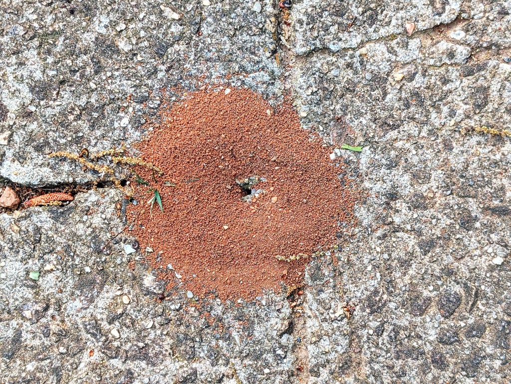 And one notices the fire ants have established many beachheads in the sidewalk crevices.