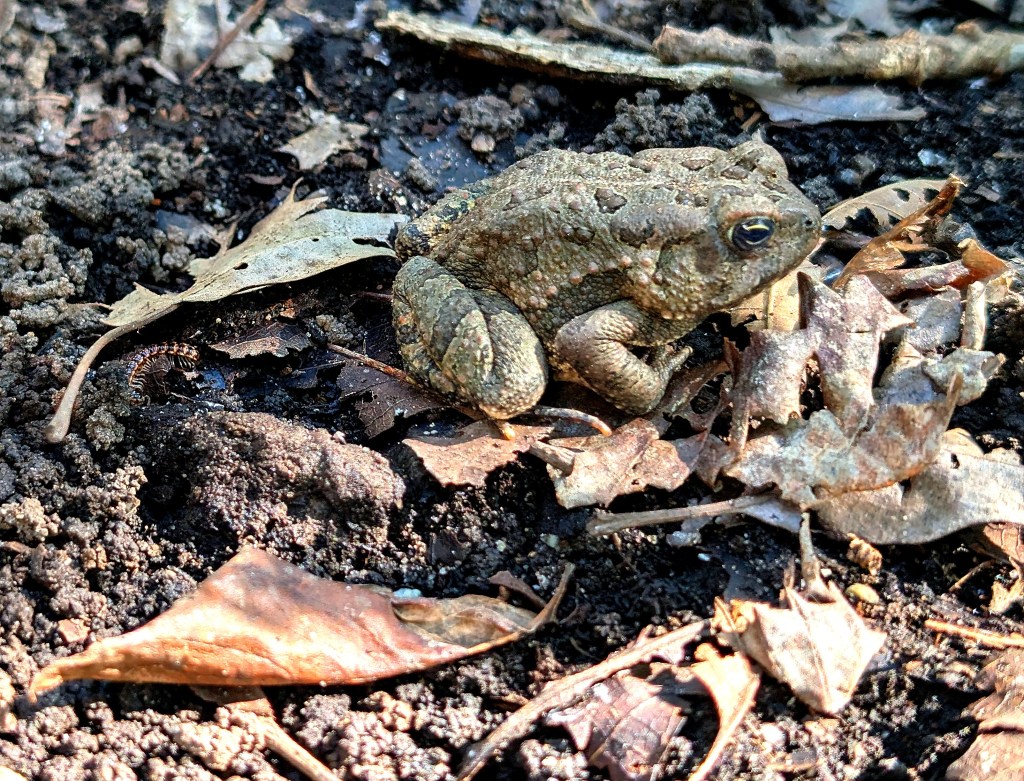 While weeding something moved, just a bit, and I spied this Southern toad. I haven’t seen one around this house since we moved in over 8 years ago, but saw them regularly at our former house on a pond. Pretty lethargic—it’s a nocturnal creature. September 2025.