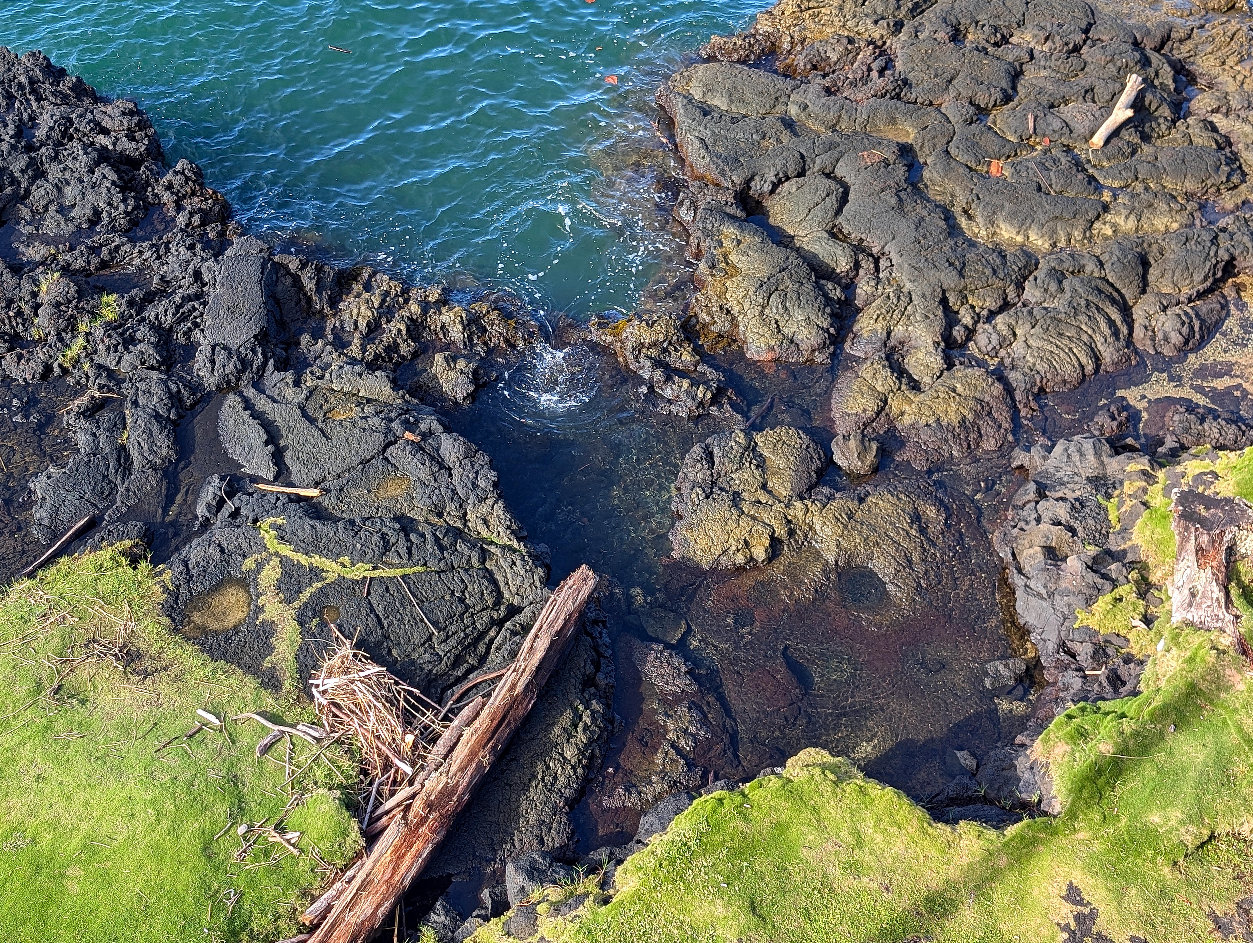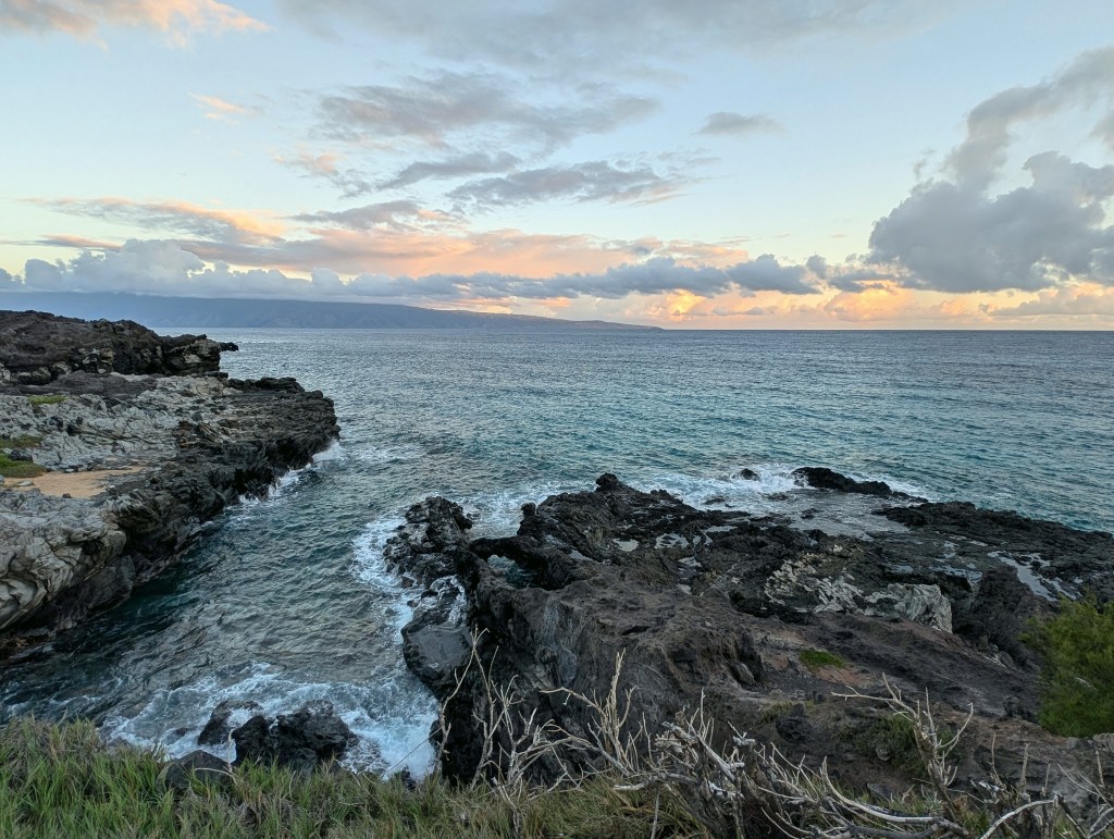 In Hawai’i, though, I found my heart beating in sync with its coastline as if I had found a long-lost sibling. I suspect this has something to do with being taught at an early age that “coast” means “what it looks like around Puget Sound” and to a lesser extent the Pacific Coast of Washington State: volcanic rocks to the coastline; cliffs of sand, sedimentary rock, and mountaintops which send their flanks plunging through the intertidal zone to significant depths in mere meters. But could it be more genetic? As far as I know, my ancestors all came from either Norway or that island divided into England/Scotland/Wales. From photos it seems a rocky coastline, lashed by pounding waves, much of it featuring knobby cliffs which prohibit dipping one’s toes in the water–and this water is crystal clear.