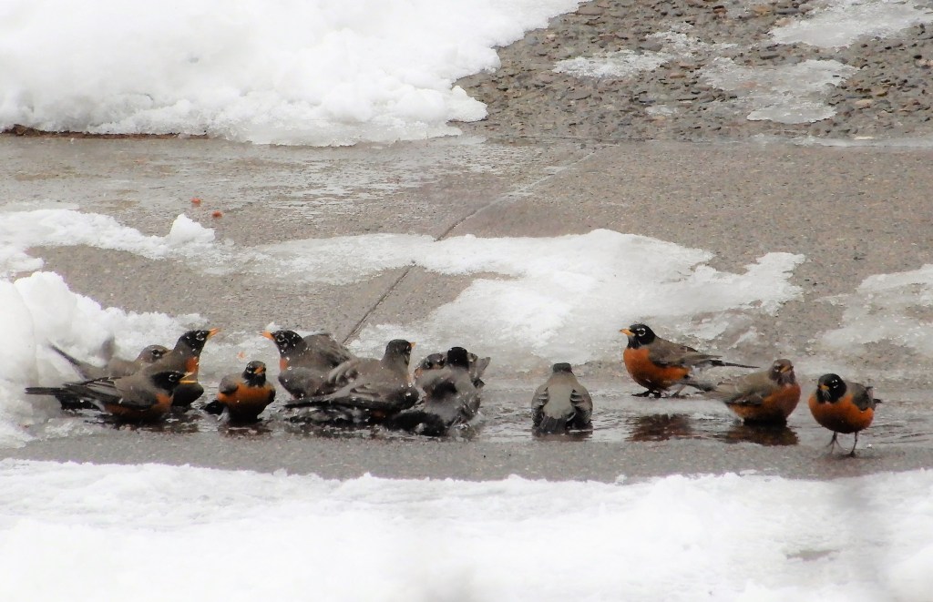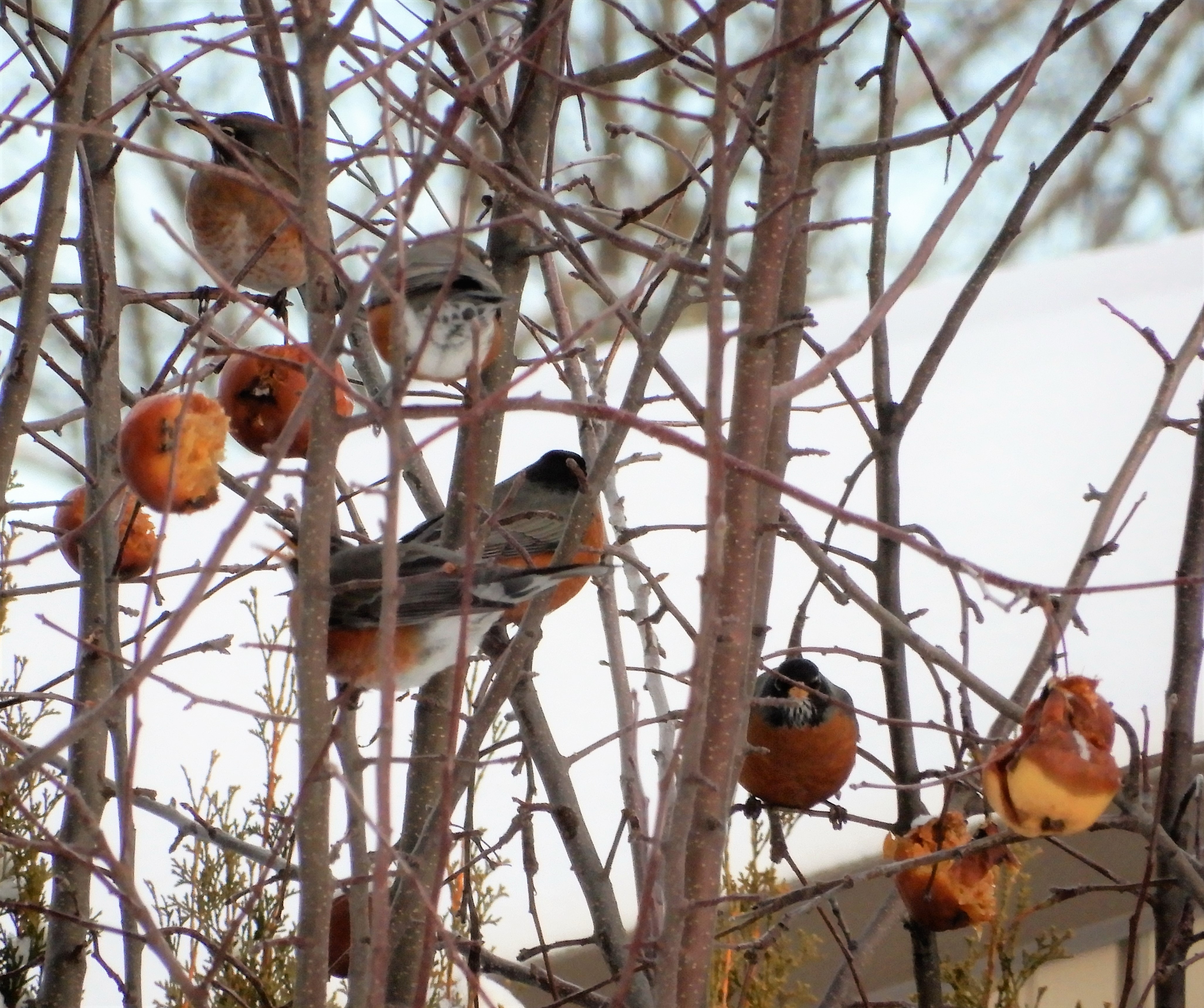 There are at least 15 different collective nouns for robins, most of which seem to refer to actual European robins, not the thrushes Americans call robins. I like blush. I watched a group feast on leftover apples one morning, orange on orange, then discovered the robins across the street where they had gone to refresh themselves.