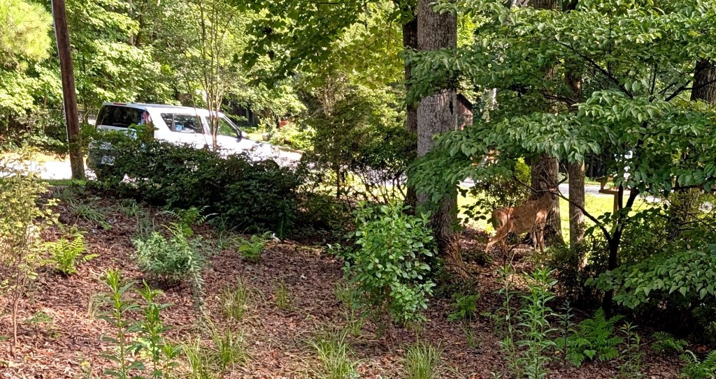But here’s the thing: though closely identified with the American South, they are not native to it. To quote the NC State University’s Extension Gardener website, “[Crape myrtle] is native to the Philippines, Japan and central Himalayas to southern China and Indochina.” Our whole move the past 12 months has been to replace everything in the front yard with native plants. (note that in the photo above) After a year of debate, and many years of saying, “Maybe they will bloom better when they get bigger,” we’ve decided to replace them. (Sorry, former owners. Consider it payback for removing that big tree in the front yard and not properly having the stump ground. I nearly broke my ankle in that mess many a time.) On one side will be an ‘Amethyst’ witch hazel which blooms in winter and very early spring. (Photo here.) On the other side will be a serviceberry. It mimics the look of a crape myrtle with the multi-trunk growth, but it will provide berries for birds and other critters.
