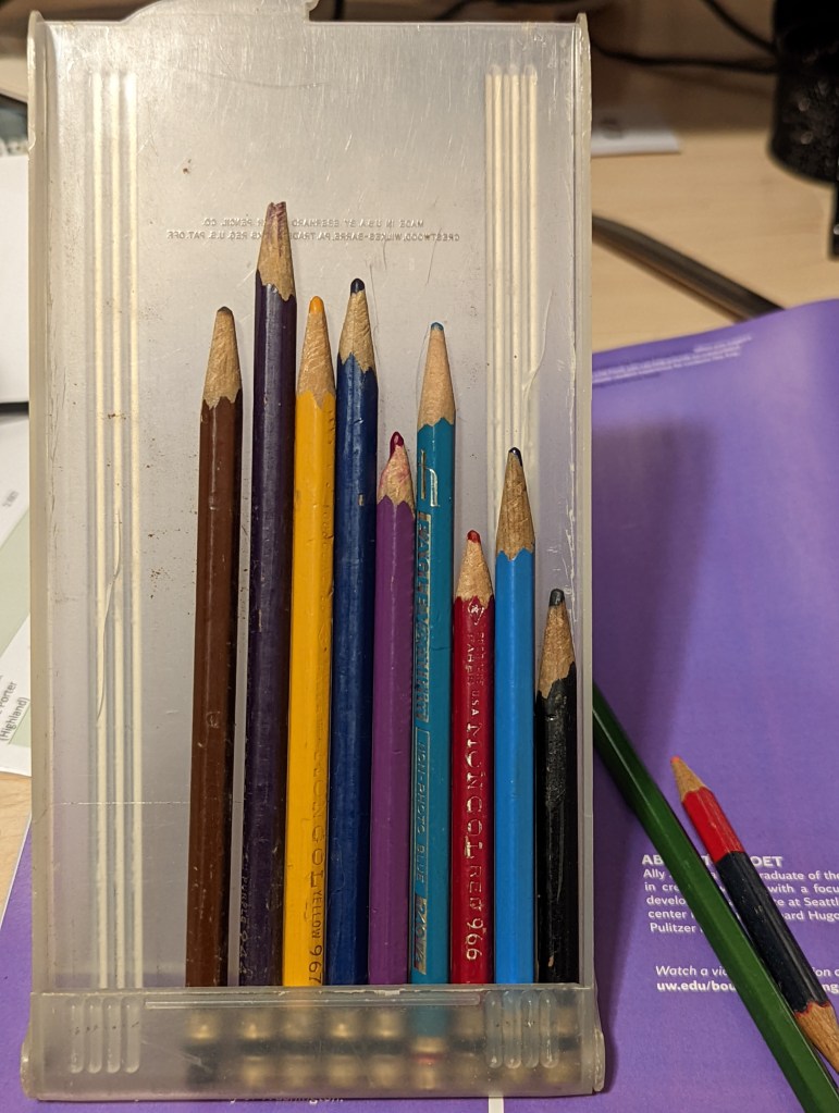 “There are rules,” she said. “Rules rule.” Pitiably, I Know what she means. ============================= Put the colored pencils in Sequence according to height, Says my ten-year-old inner voice. Nice. Now rearrange by color, Rainbow-like. (Look up the spectrum If you must, Kenny.) Now, Place the colors violet through green, Left to right, into your rack with space between, because… Double back the ‘light’ colors from Right to left, ending with red between Violet and blue. Good! But now, Arrange them alphabetically By color name. Now put them Away. We’ve no time to actually Do anything with them. Besides, You’re no artist anyway. ============================= When you walk to school, step Precisely between the expansion Seams of the concrete sidewalk. If there’s a crack, step in the bigger Piece still between the seams. For extra points, step equidistantly From each seam. No care for Mother’s back in all this—just Walking how you color… ============================= Oh, beautiful algebra! Lovely Geometry! Your rules so pristine, Your road to explainability, to All’s-right-with-the-worldness. And Diagramming sentences! Who cares If it’s useless? It’s beauty cannot Be denied! Science, though, Its physics, its chemistry, its Squishy biology stuff, no, Not abstract enough, not In-your-head enough. Too Practical, too mundane. ============================= You have to call her, man. But…today? Is three days a Proper amount of lead time? Would twenty-four hours be Too little? Would it be better if I called in the afternoon or Evening? Oh, why did I ever ask Her out in the first place? “You know, I think I’m not going To go to the prom this year after all.” ============================= ”No, I’m not going to wait twenty Minutes to eat, especially if I have To wait outside. It’s cold.” He drives Off spending forty minutes to Save twenty minutes. ============================= “We could gas up there.” Wrong side Of the road. “There’s one.” Nope. “Too seedy. There’s one!” but, Crap, every pump’s occupied. Ding! Your car says, "feed me". ============================= “Isn’t life too difficult this way?” Asks Creative-Emotive Voice. “Can’t We take it easy? Just roll with it?” Try that. Good too. Shut Obsessive- Controlling Voice into its compartment Deep within one’s gray cells. Overrule Edicts for living, for walking, for performing Every. Single. Act. Of. Human. Existence. “If you’re going to be A Writer, how Do you expect to do it listening to That Guy? Feel your heart surging? Sure you do. How can you ignore it By following these silly rules?” Drink too much. Eat too much. Drug Too much. Watch movies while Neglecting one’s bills, one’s friends, One’s social reason for being… One’s stated creative urges. But: Give Rulemaker his short leash. Gentle grid of rules on fields of Creative abandonment. Create. Create. And create. Short Circuit all words with singing, With photography, with poetry (yes), With—of all things—computer Programming. (“How can I fail At explaining what I do When I program?” Sorry, Dude, no words involved then, No words available now.) ============================= Uneasily, after many misstarts to One’s Life Direction, Let them both talk. Let one Over-rule the other, let one Overrule the other. Blend, Mend, learn Selective Voice Attention Mode. Leaving one Question, one conundrum: who selects which Voice? Who are you? Who are “You”?