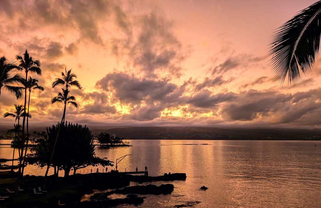 How I see the world, Lesson #2 As a moody, brooding entity. (“I’m gonna have to clean out these pesky humans some day.”) Sunset over Hilo Bay, HI. September 2024.